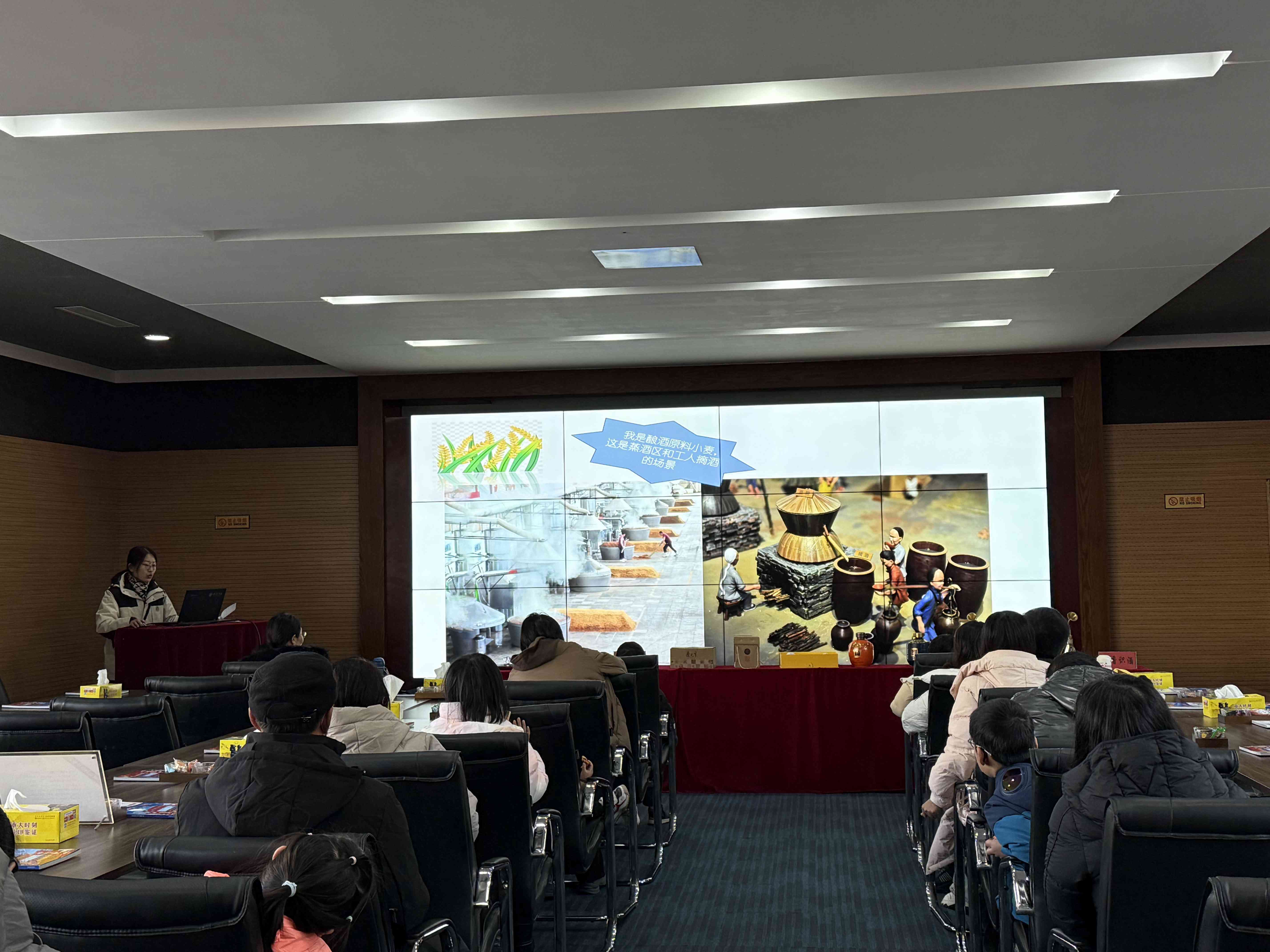 在釀酒車間,游客們得以沉浸式感受傳統(tǒng)的國家非物質(zhì)文化遺產(chǎn)——老五甑釀造技藝。目睹了佳釀的誕生過程,孩子們更是對釀酒過程充滿了好奇和興趣,紛紛向講解員提問,現(xiàn)場熱鬧非凡。