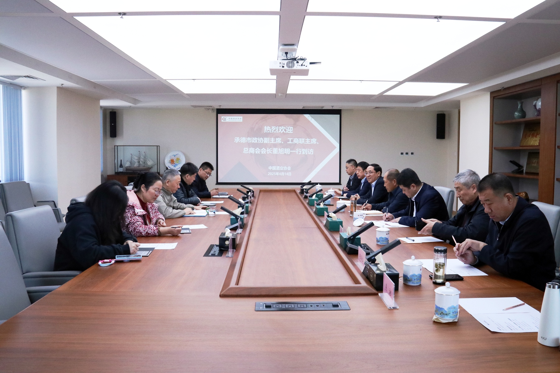 4月14日,承德市政協(xié)副主席、工商聯(lián)主席、總商會(huì)會(huì)長(zhǎng)董旭明,承德市發(fā)改委副主任朱興允,承德市酒業(yè)協(xié)會(huì)理事長(zhǎng)劉磊斌,秘書長(zhǎng)陳建強(qiáng),河北板城酒業(yè)黨委書記、總經(jīng)理張春生,河北板城酒業(yè)總經(jīng)辦主任吳迪及承德酒業(yè)同仁一同走進(jìn)中國(guó)酒業(yè)協(xié)會(huì),雙方就地產(chǎn)酒發(fā)展、產(chǎn)區(qū)建設(shè)、品質(zhì)表達(dá)、文化價(jià)值等方面進(jìn)行了座談交流。