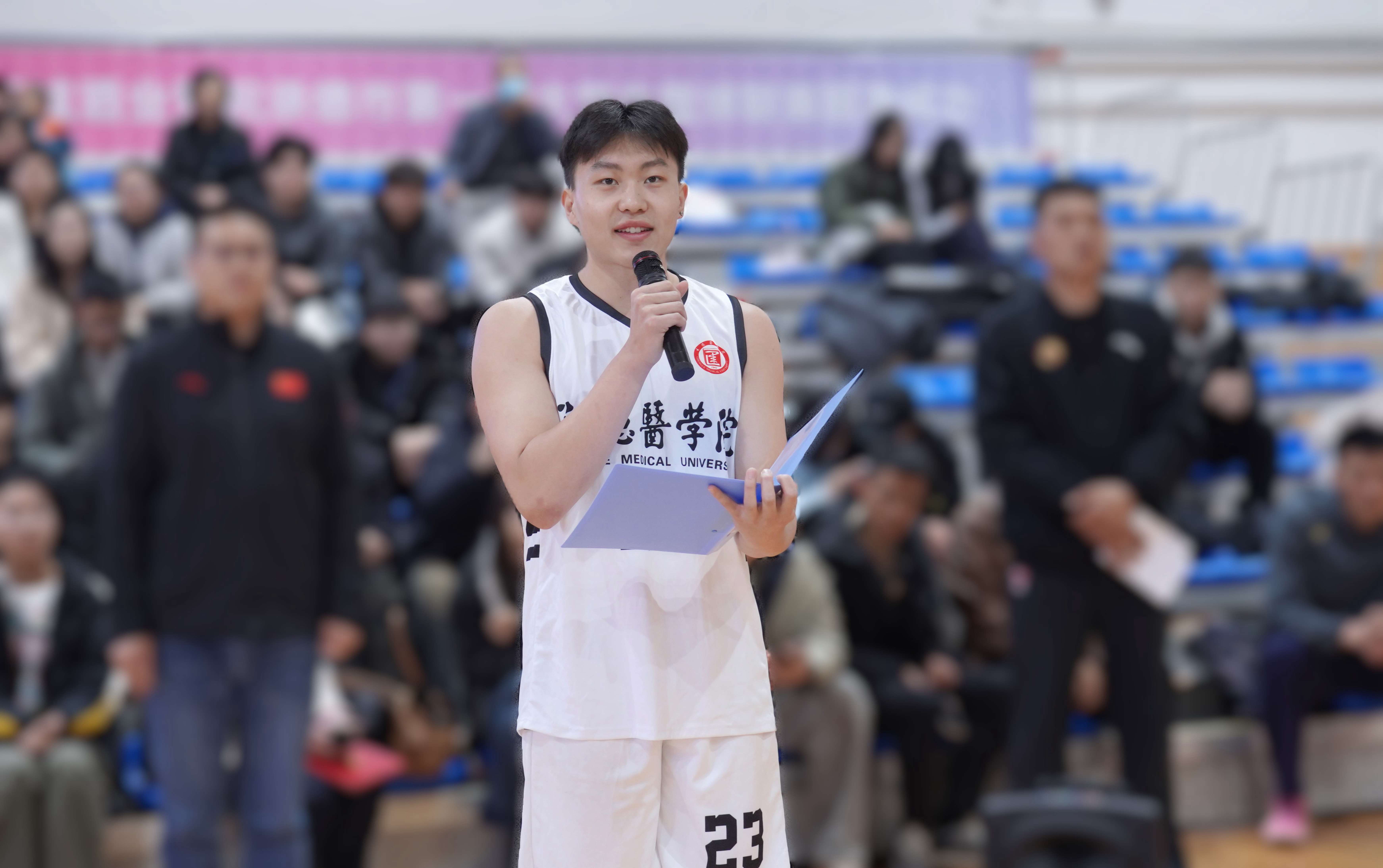 承德醫(yī)學(xué)院黨委常委、副校長郭玉成致開幕詞,郭校長在開幕辭中勉勵(lì)學(xué)子,恪守校訓(xùn),將籃球賽場上的拼搏與協(xié)作化為成長養(yǎng)分。他高度肯定了“板城和順杯”所承載的校企協(xié)同育人新模式,這不僅是一次體育賽事,更是校企雙方深化合作、共育棟梁的生動(dòng)實(shí)踐,展現(xiàn)了企業(yè)回饋社會(huì)、助力教育發(fā)展的責(zé)任擔(dān)當(dāng)。